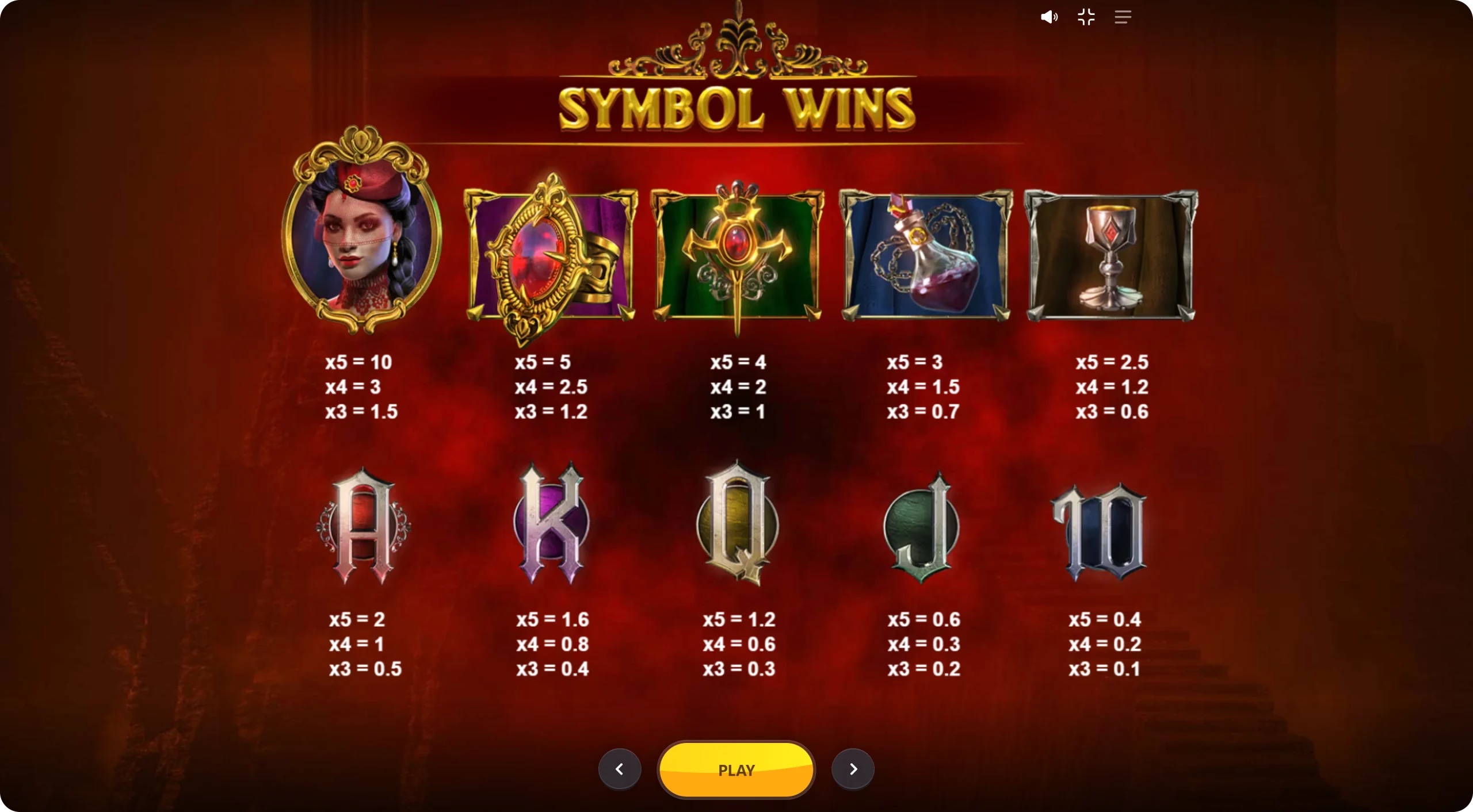 Lady is the highest paying character, with chalice, cross, flask, and ring being other more valuable icons. Playing card symbols are low-paying, as usual. NJ’s best options on the casino market include games with fun gameplay and substantial total prizes like x5000 in this vampire-themed slot from Red Tiger.