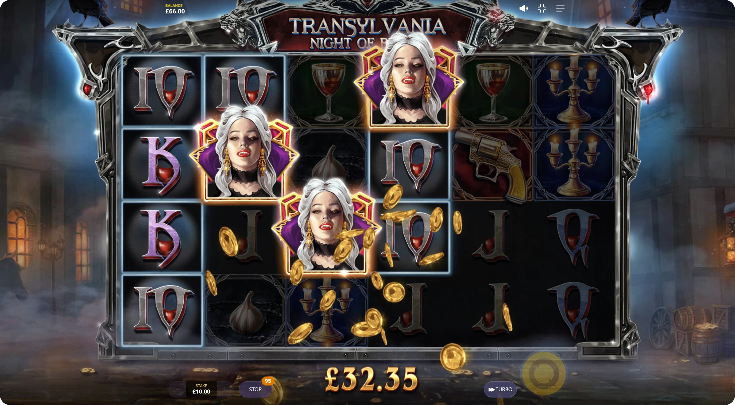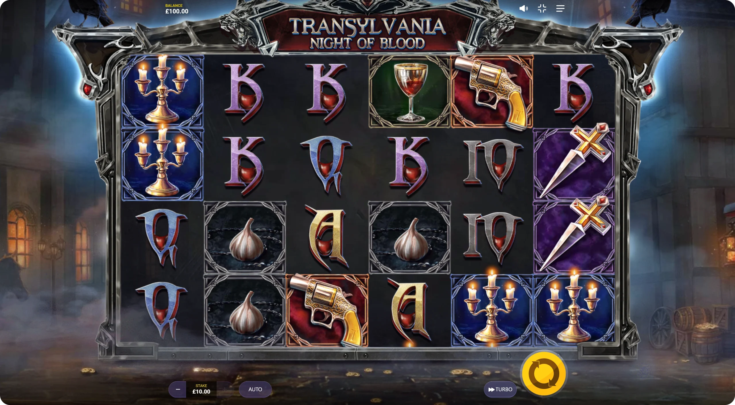 Continuing the success of Red Tiger’s other Vampire-themed slots, Transylvania: Night of Blood combines fun features with attractive visuals and enticing animations. The game has a 6×4 grid and 4096 ways to win.