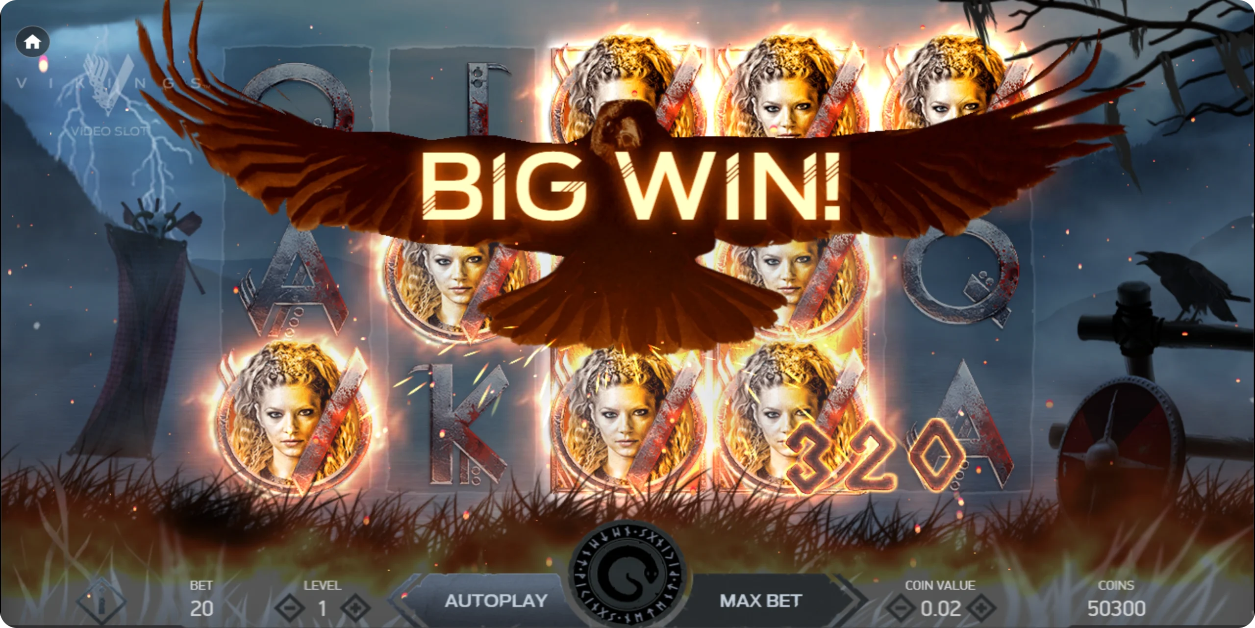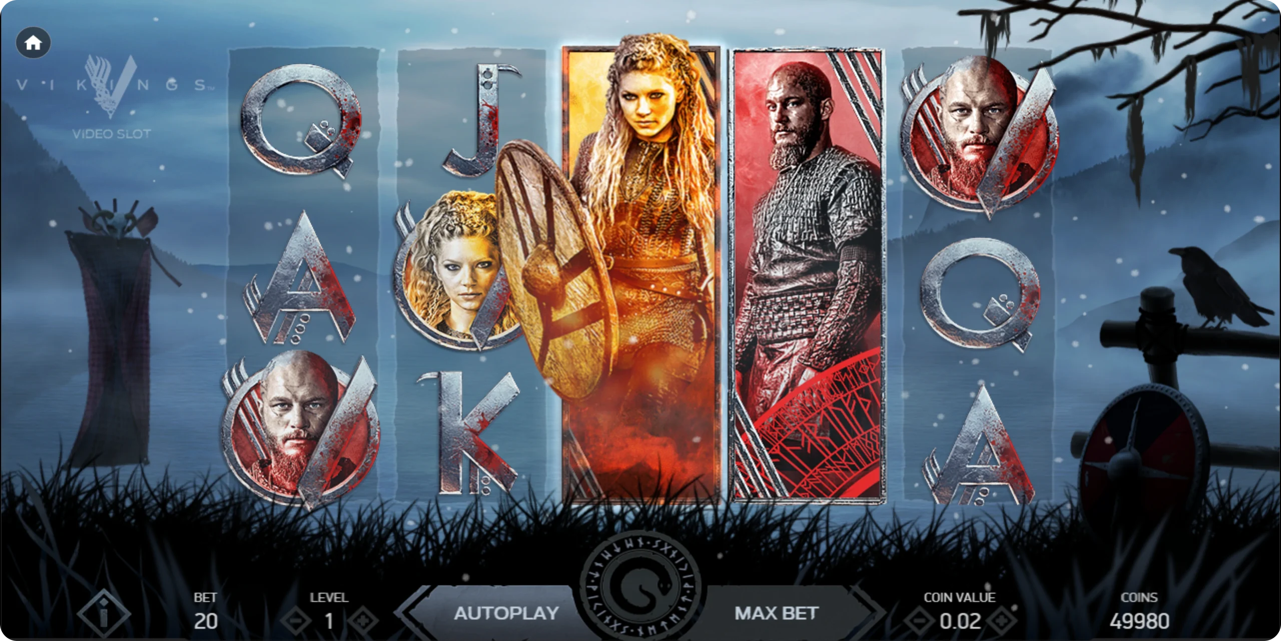 Ragnar Lothbrok, Lagertha, Loki, and Bjorn are famous TV screen Vikings who appear as higher-paying icons in the game. The stylized logo of the show—V—is the most valuable symbol in the game.