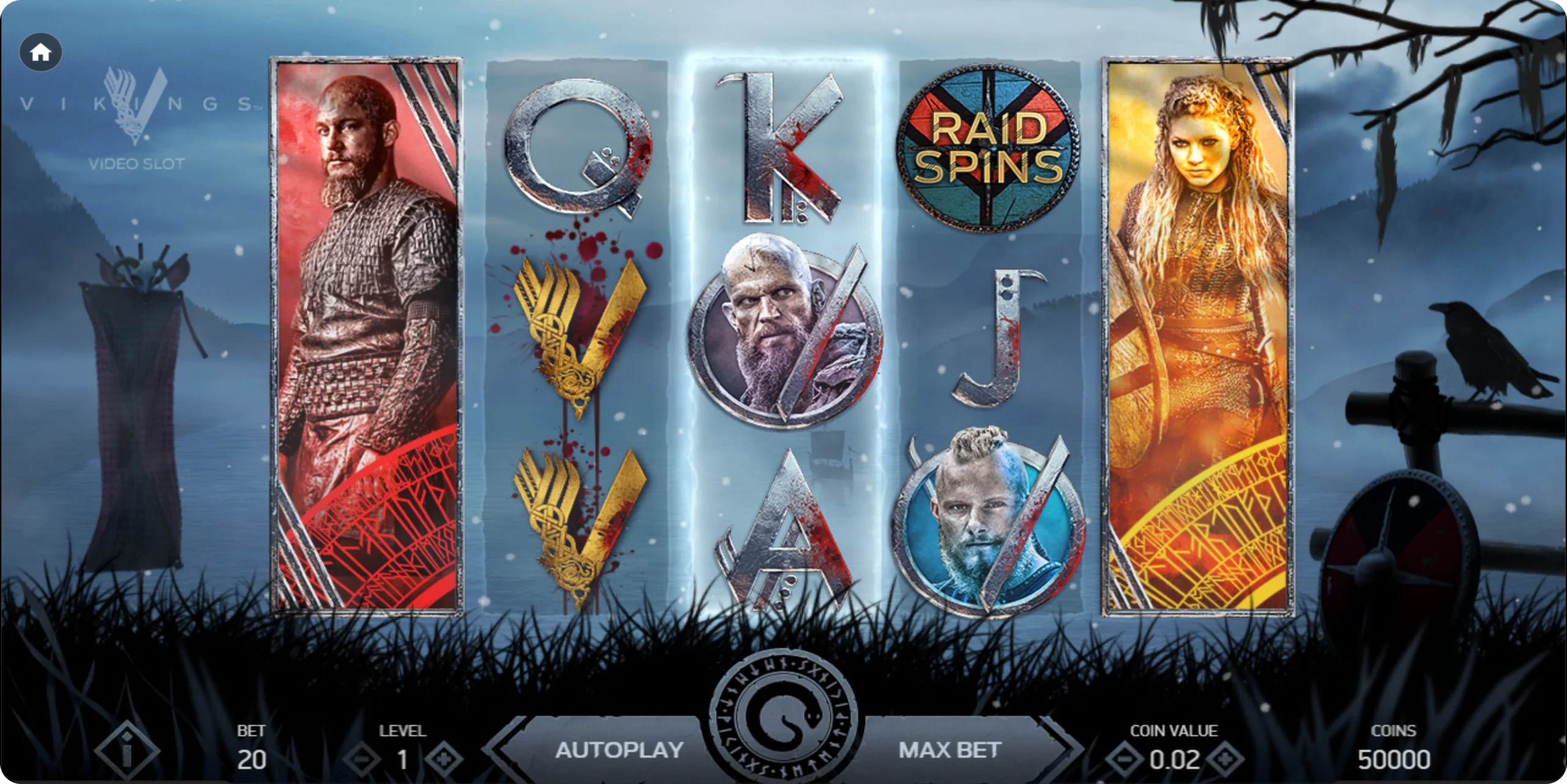 This title comes with three unique options that vastly improve standard gameplay. In the base play, the Hotspot feature is illuminated on the third reel. If a stacked Viking icon lands there, all other characters from the show transform into that one, creating scatter wins. It is possible to get up to 15 symbols, which results in 243x of the player’s initial bet, and up to 27 icons in the Raid Spins round.